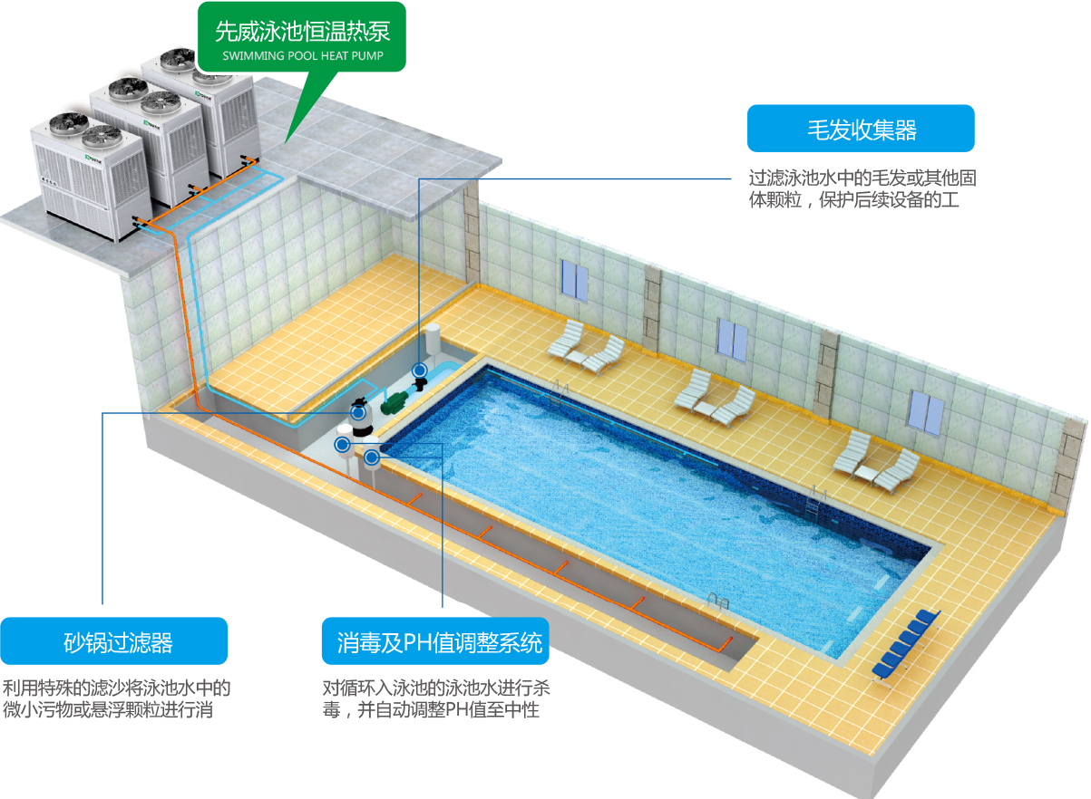 泳池?zé)岜萌绱送ㄟ^制冷劑的不斷循環(huán)與泳池池水交換熱量將水加熱,同時(shí)在運(yùn)行中不釋放附加熱能,不排放有害物質(zhì),工質(zhì)與池水完全分開,不會(huì)造成二次污染,屬于節(jié)能環(huán)保產(chǎn)品,故在倡導(dǎo)節(jié)能環(huán)保的今天,泳池?zé)岜帽貙⒂瓉砀咚俚陌l(fā)展。
